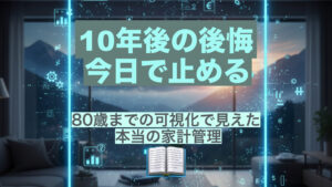 私は自作の家計簿を使い、「80歳までの家計の可視化」を行っています。なぜそこまで長いスパンで考えるのか、その理由についてはこちらの記事(「10年後の後悔」を今日で止める。80歳までの可視化で見えた、本当の家計管理。)で詳しくお伝えしていますが、一言で言えば「今、何をすべきか」を明確にするためです。