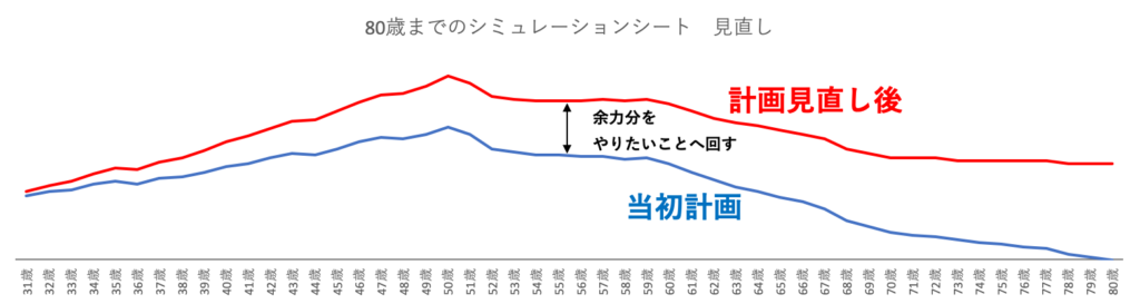 一見良いことに思えますが、家計を「運用」という視点で見ると、もっと効率的に将来へ資金を回せたはずだという気づきになります。そこで、今年の実績を加味して「80歳までのシミュレーションシート」(貯蓄計画)を即座にアップデートしました。