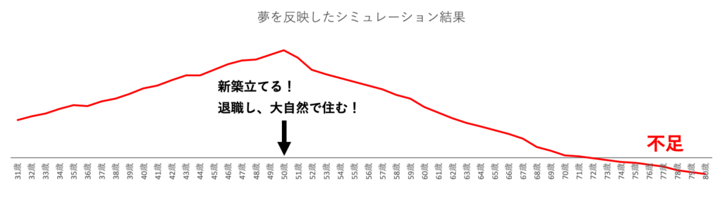 →数十年後に貯まってから気づくではなく、今気づくことで、今しかできないことができるように(機会損失の回避) - 夢への距離の再測定: 「新築を建てる」「50歳で退職し、大自然で暮らす」という私の夢に対して、今のペースでいくら足りないのか。今回の修正で、その不足分をより現実的な数値として確認できました。