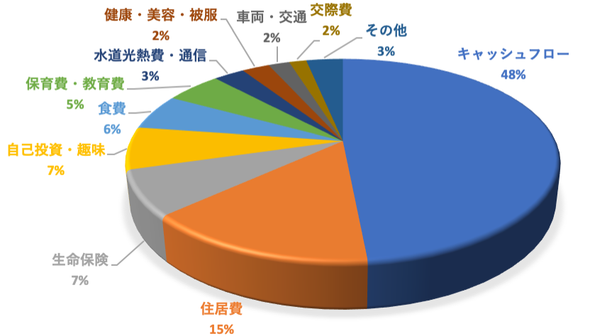 | キャッシュフロー | 48% | 今年、最終的に手元に残ったお金(貯蓄・投資) |